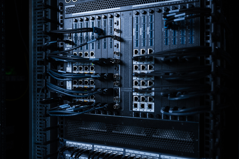 De bekabeling vormde een tweede uitdaging: 36 netwerklijnen en 3 stroomgroepen moesten door een rups-systeem waardoor die niet meer goed te roteren zou zijn. De oplossing: fiberverbindingen via switches, waardoor de muur draaibaar bleef met slechts 2 fiberkabels.